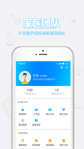 通过签约管理、医学工具、居民管理、团队管理、服务管理等功能,打造家庭医生一站式服务助手。