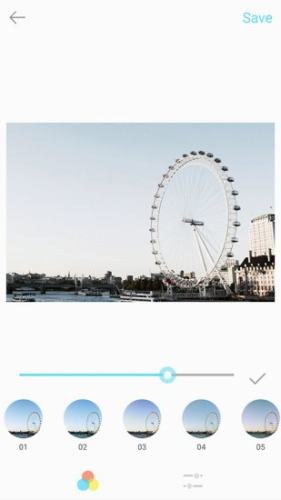 滤镜调节拉杆可以帮助你调节照片美化程度