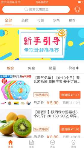 推推客app是一款分享商品好友的赚钱软件,使用推推客app,只要你讲软件内的商品分享给好友,当好友购买后你就可以获得一部分的奖金哦!还可以推广到其他的论坛、贴吧等地,只要有成交。就有收益。想要试试看吗?快来下载吧!