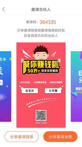 2、发展合伙人界面优化。(分享邀请链接和海报两种形式)