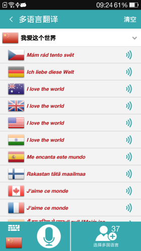 1、语音实时翻译到语音,支持37种国家和地区语言。
