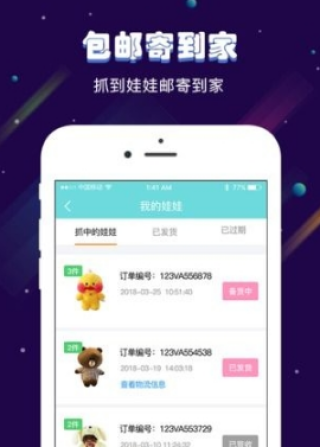 实时抓娃娃,抓到的奖品全部包邮寄到家,省去排队的麻烦,24小时在线不打烊!