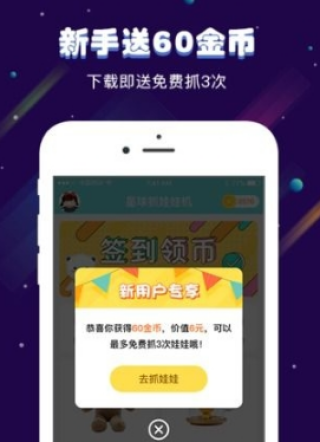 1、新用户在线注册就能得到相应的娃娃金币,闪电速抓;