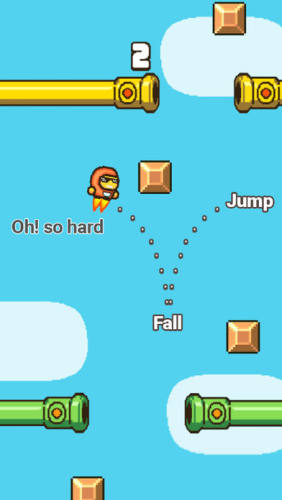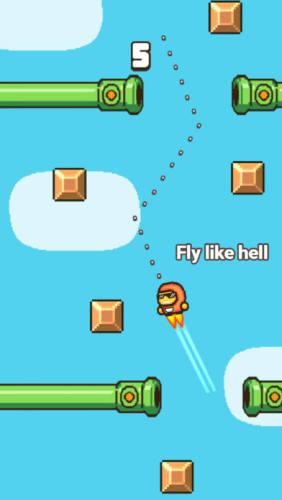 《飞往高处Fly High Jetzy》,一款手机上趣味十足的休闲小游戏。游戏画面简洁,玩法简单游戏,玩家只需控制像素小人不断向上飞行,同时躲避各种障碍物即可!