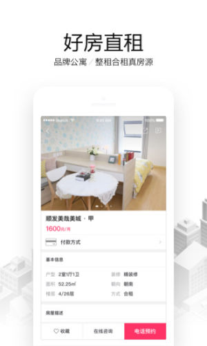 【居住好体验】提供品质装修和优质家具家电,可拎包入住,定期保洁和一键呼叫维修,以及租客公约,让用户住的更爽;