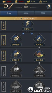 在军事科技,你可以强化部队的防御和进攻,强化每个兵种的属性和兵量上限。