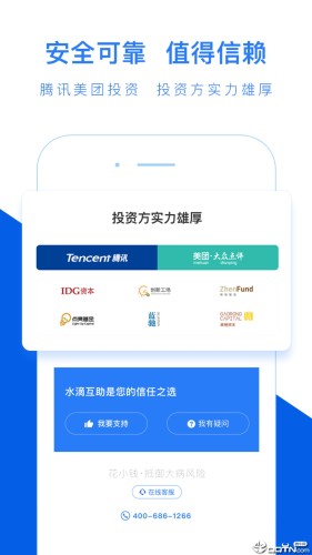 目前水滴互助已获IDG资本、高榕资本、真格基金、腾讯和美团—大众点评等联合投资