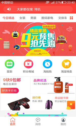 下载手机淘宝app最新版70.5M154763人在玩手机淘宝app客户端是淘宝网官方推出的提供给用户使用的手机购物软件,为用户提供快捷方便的手机购物新体验。更具有搜索、比价、物流订单查询、安全支付宝支付、收藏评价、我的动态、导航、打折促销、手机专享、购物车合并付款等功能,感兴趣的朋友欢迎下载体验。