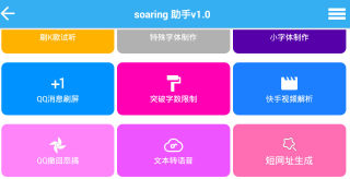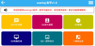 Soaring助手,一款非常重要的手机工具箱,提供着QQ透明头像、QQ刷名片赞、QQ强制聊天、QQ刷圈圈赞、QQ说说刷赞、QQ蓝色说说、QQ说说打赏等功能,让你们时刻解决各种难题,喜欢的都能来此下载。