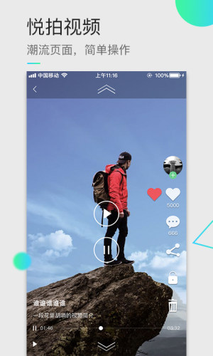 1.直播、悦拍:全新直播、悦拍视频界面,新的界面,享受更优质的全景画面