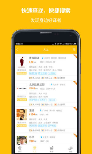多语言人工在线翻译app一款集人工翻译,翻译软件,多国语言翻译于一体的翻译神器,3000+名优秀译者人工一对一翻译,可以笔译,口译,同声传译等,下载注册即可联系译者。