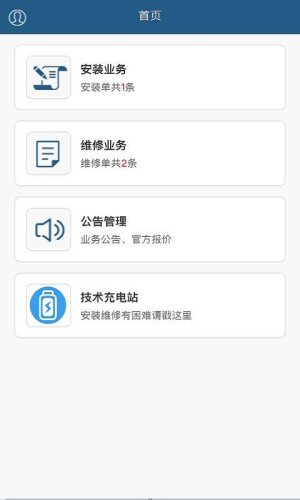 该软件主要包括安装任务、维修任务、公告管理、技术充电站、个人中心等模块。