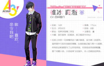游戏中,玩家将遇到20位性格各异的成员,与他们共同为满开剧团的未来奋斗。有些出人意料的是,a3满开剧团中的角色年龄跨度相当大,人物设定不止局限于最流行的高中生、大学生,而是从中学生到社会人。