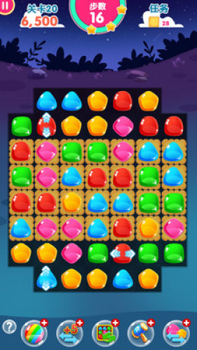 游戏玩法简单,轻松有趣,还有机会生成不同的道具,轻松收集糖果,轻松过关。