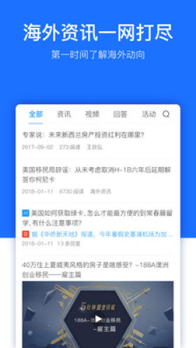新海外APP,非常专业的资讯信息软件,提供出国,买房,留学,移民,投资,置业信息的出国服务,让让你们能够快速便捷的查看所需的海外资讯。