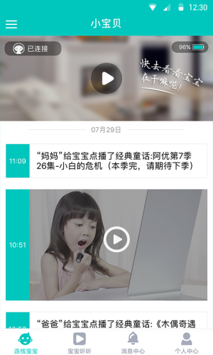 结合设备上的高清摄像头,家长可以在App端查看宝宝,并主动开启视频通话,孩子也可以在设备端发出指令跟家长通话。陪伴,其实很简单。