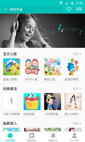 本应用结合第三方优质资源,为用户提供了海量儿童早教资源,包括国学、英文、童话故事、儿歌等内容,父母不在身边,也可以随时引导孩子学习。