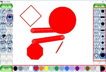 1、它有很多不同的画刷与颜色供你选择。如果你想画条直线,按下lines按钮并在shapes 按钮上点击以选择不同的形状,shapes按钮提供给你很多不同的形状。在你把它真正画到画板上之前,你甚至可以旋转与缩放它们。