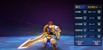 强化系统在英雄达到5星开启内丹之时同时开启,玩家通过给英雄升级内丹等级获得技能点,每升级一点内丹等级可以获得5点属性点,属性点可以在英雄界面强化中自由分配给生命值、物理强度、法术强度、物理防御力、法术防御力五种不同的属性