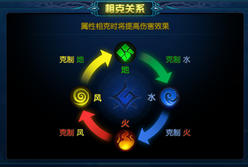 游戏中英雄出生时便分属地、水、火、风四种属性。