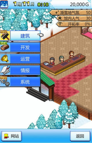 游戏依然采用开罗惯有的彩色像素风格,玩法就是经营酒店和滑雪场,通过不断的开荒来扩大滑雪场,摆放各种滑雪设施增加滑雪场气氛、人气,让更多客人来体验。