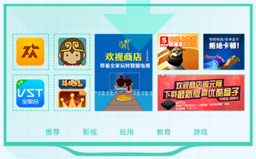 欢视商店为智能电视而生,提供了影视、游戏、教育、生活等各类应用,最新上架TV应用,装机必备软件,不管需要什么样的电视app,都能在这里找到并下载安装到你的电视中。
