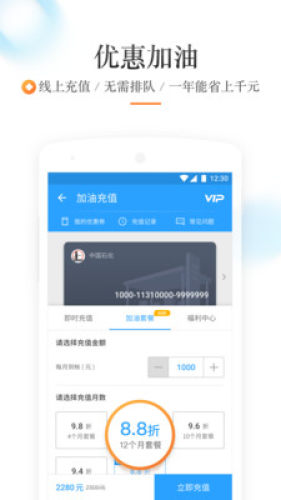 加油享受超低折扣,年省上千元,全国范围内的中石油和中石化加油站通用,自动充值5-10分钟可到账、在线支付充值失败100%退款、到账短信通知全程VIP人工服务。