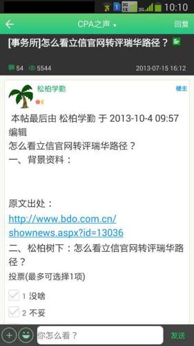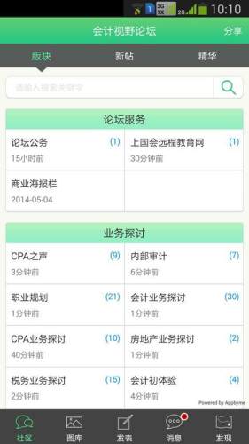 3.中国会计视野论坛APP,可在手机上发贴、看贴、跟贴等。