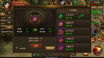 内丹增加暴击率和暴击伤害,达到需求数值即可升级。
