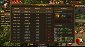 在今日活动界面可详细浏览今日活动历程,右侧有详尽的活动奖励和活动说明。