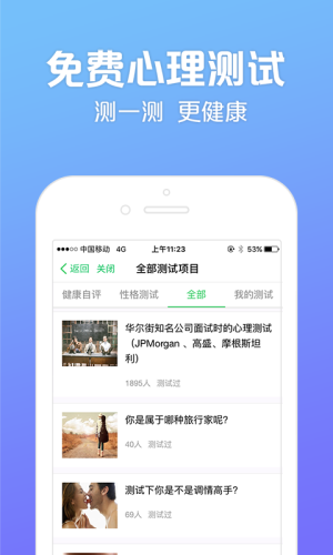 心理测试是一款心理测试app,支持趣味测试、专业测试、情感测试、职业测试等功能,让你探索神秘的内心世界,发现真实的自己,感兴趣的朋友,赶快来下载吧!