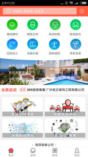 集建材商城、设计师、工长监理、周边服务为一体的生活信息类服务。
