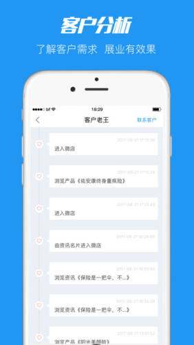 保险微店帮您分析每位客户行为轨迹,了解客户真正需求,让您不再盲目展业,签单才能快人一步;