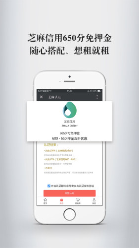芝麻信用授权合作,芝麻分满700分即可享受全品类免押金租借.