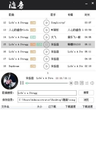 随音是一款无损音乐下载工具,它以QQ音乐服务器为主体,支持QQ音乐上所有的音乐下载。传音最多可以解析出歌曲的十种音质,各种音质让你挑选。下载歌曲的方法很简单,只需要在歌曲上面左键单击一下,即可弹出下载菜单。传音支持批量下载,可以直接在线播放歌曲,播放界面简约。更多功能,待你亲自体验。