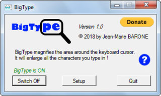 BigType是一款轻巧便携的免费软件,可以实时放大您输入的所有字符。