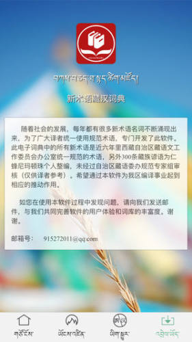 词典主要内容是研发者收集整理西藏自治区藏语委办下发的新词术语公告中的新词汇汇编录入而成,