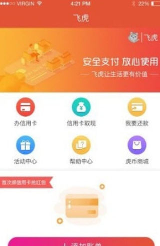 飞虎管家APP,本站推出的手机信用卡管理软件。这款最大的不同,就是页面改版,功能更清晰,让你们账单一键查询提额,快速的还款。