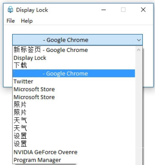 运行 Display Lock 后,它会自动读取当前打开了的窗口程序窗口并一一列出来。你可以在下拉列表中选择对应限制的窗口,然后点击「Start」按钮进行生效。