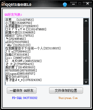 QQ好友备份器只需要登录你的QQ号码软件就会自动帮你找出你QQ的所有好友的号码和昵称然后点击一键保存这些QQ号码和昵称就会自动保存在和软件一起的目录里面,(使用软件前先解压缩)。这样我们的QQ丢失了或者好友找不到了就可以直接恢复了。