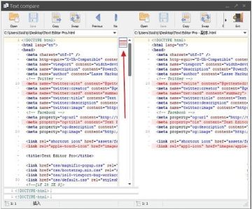 14、文本比较功能。2个文本的不同之处会用高亮区分,并且也会用类似小地图的图形告诉你2个文本有区别的地方在哪出,就像软件No1这篇文章截图中的那样。