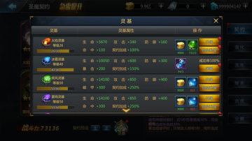 在契约主界面下方的灵基按钮,会显示当前各个灵基的属性,并对这些属性进行升级突破。所消耗的材料,可以通过点击一键开启获取途径。