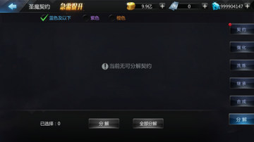 契约分解标签,可以让你分解当前冗余的契约,以获得供契约强化实用的契约之石。不同品质的契约分解后也将获得不同品质的契约之石,分解过程不可逆转,请考虑清楚后再实用。