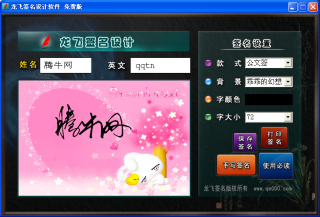 龙飞签名设计软件是一款签名设计软件,只要你输入你的姓名,软件立即生成你的签名--手工签名,完全区别于电脑字库生成的签名,让你3秒钟轻松获得漂亮的签名。高速发展的社会对签名的需求不断增加,高层人士需要签名,普通人也一样需要签名,合同、文件需要签名、参加会议、宴会需要签名、去银行取钱、汇款同样需要签名,互联网的邮箱、QQ、论坛等也都需要签名,签名的用途非常的广泛,怎样使签名大众化,能够随手可得,而且签名的质量说得过去,龙飞签名设计根据这个出发点设计开发了这套签名软件,让它服务于社会。
