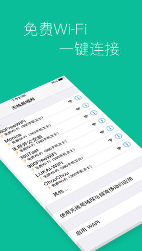 【免费WiFi】亿万热点一键连接,更加方便安全上网。