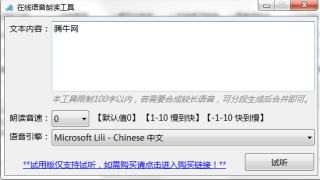 在线语音朗读工具专业版是一款小巧实用的专业化在线文字转语音工具,在线语音朗读工具专业版功能强劲,绿色免费,支持对文本内容文字进行语音朗读,非常的实用。