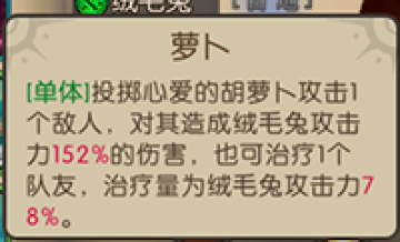 绒毛兔是一位有着很强的辅助能力的伙伴,非常适合传统的1辅助,1肉盾,3输出型打法。