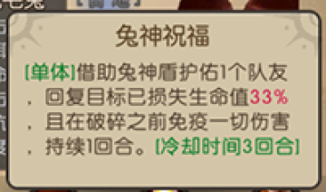 绒毛兔的核心技能,血量越少奶量越大,并且可以无敌一回合,和寿神龟简直绝配。