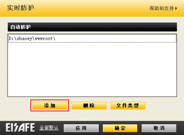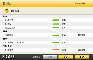 打开或关闭相应功能,自动防护进行排除保护目录,该目录将不进行实时防护。