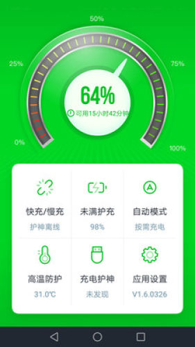 充电护神通过对充电过程的智能控制,实现满电自动物理断充、过热自动断充、低电量充电自动启动、以及用户自定义充电模式等功能,同时对于支持快速充电的手机,实现在快速充电和普通充电之间进行智能切换。